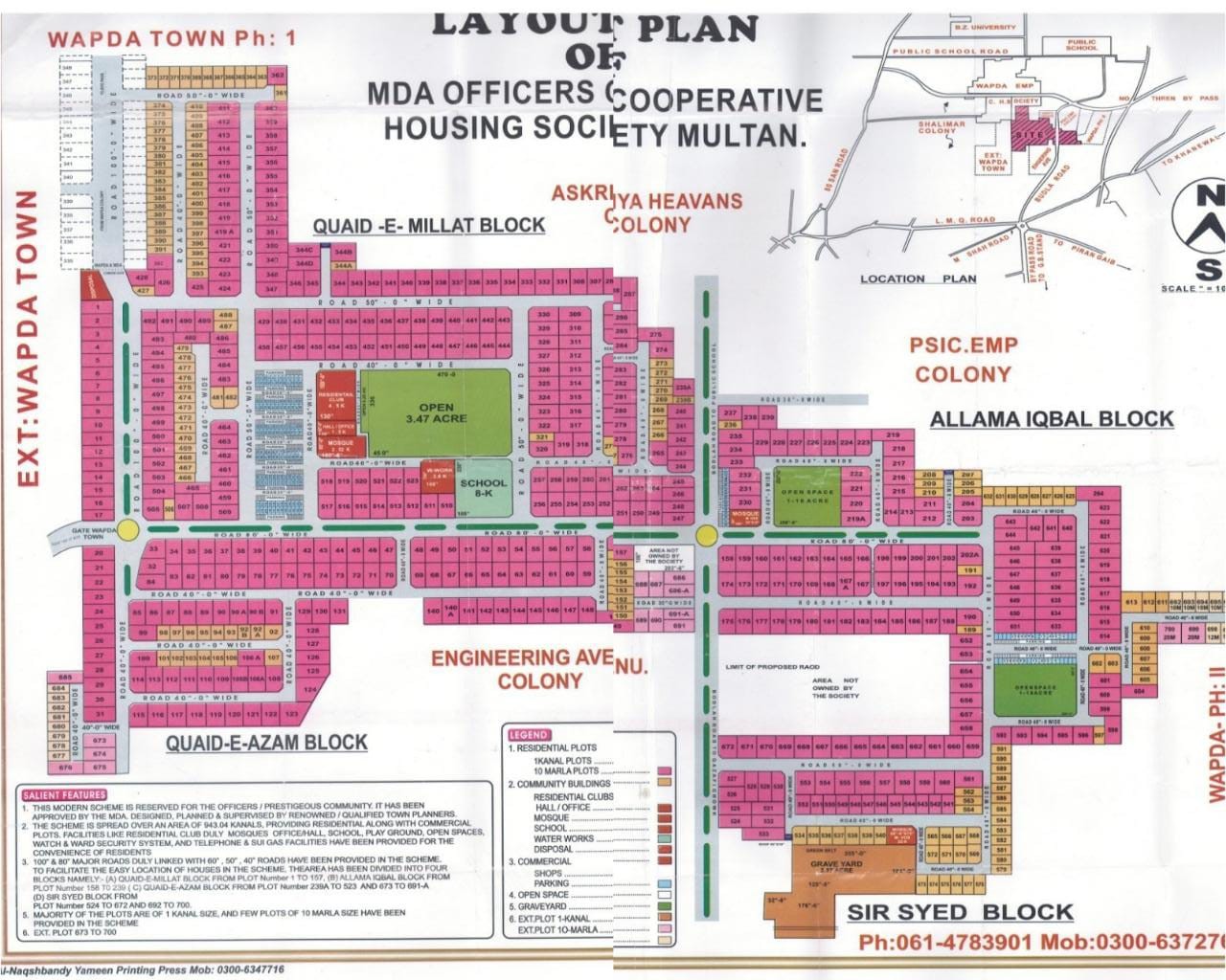 Below is the official layout plan of MDA Officers Cooperative Housing Society, Multan. It provides a detailed view of the society’s blocks, road networks, amenities, and overall structure — designed for clarity and ease of navigation.